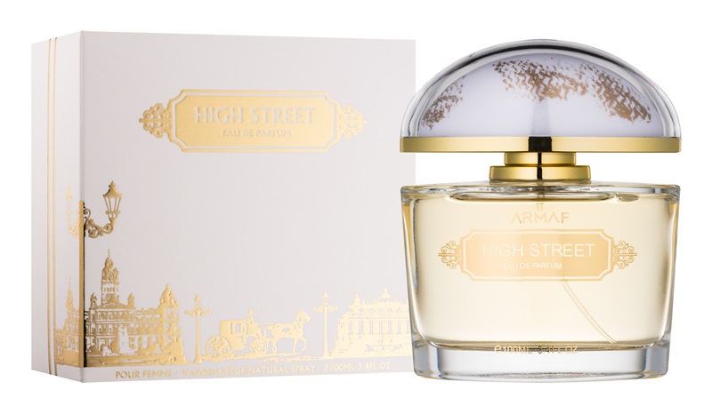 High Street podle Armaf je Floral Woody Musk vůně pro ženy. Vrchní tóny jsou Citrusy a Maliny; střední tóny jsouMagnólie a Zimolez ; základní tóny jsou Jantar (ambra), Kašmírové dřevo a Pižmo.