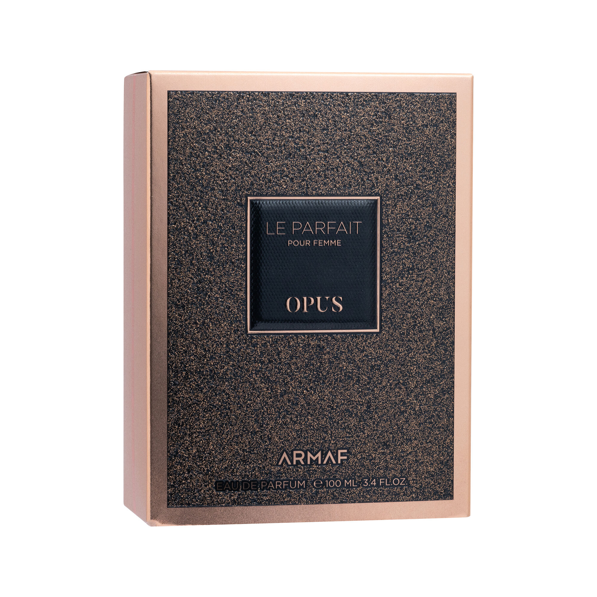 Le Parfait Opus podle Armaf je Orientální Fougere vůně pro ženy. Toto je nová vůně. Le Parfait Opus byl/a uveden/a v roce 2025. Vrchní tóny jsou Mandarinka, Černý rybíz, Petitgrain a Levandule; střední tóny jsouPomerančový květ, Levandule a Jasmín ; základní tóny jsou Vanilka, Cedr, Jantar (ambra) a Pižmo.