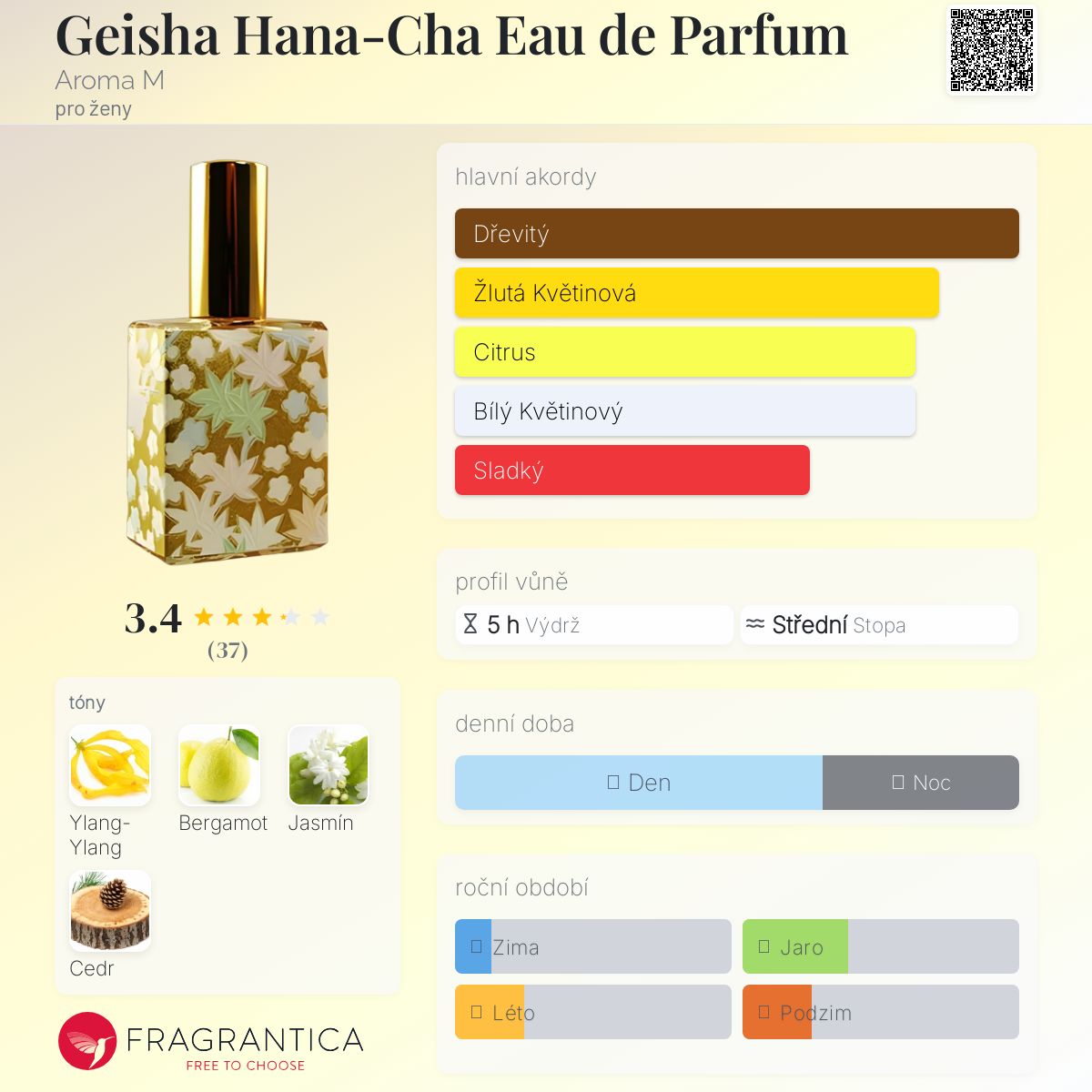 Geisha Hana-Cha Eau de Parfum podle Aroma M je Floral vůně pro ženy. "Nosem" za touto vůní je Maria McElroy.