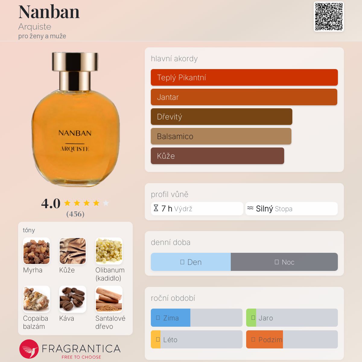 Nanban podle Arquiste je Orientální Spicy vůně pro ženy a muže. Nanban byl/a uveden/a v roce 2015. Nanban byl/a vytvořen/a Rodrigo Flores-Roux a Yann Vasnier. Vrchní tóny jsou Šafrán, Černý čaj a Černý pepř; střední tóny jsouMyrha, Kůže, Káva a Vonokvětka čínská ; základní tóny jsou Olibanum, Copaiba balzám, Santalové dřevo, Styrax a Jalovcové bobulky.