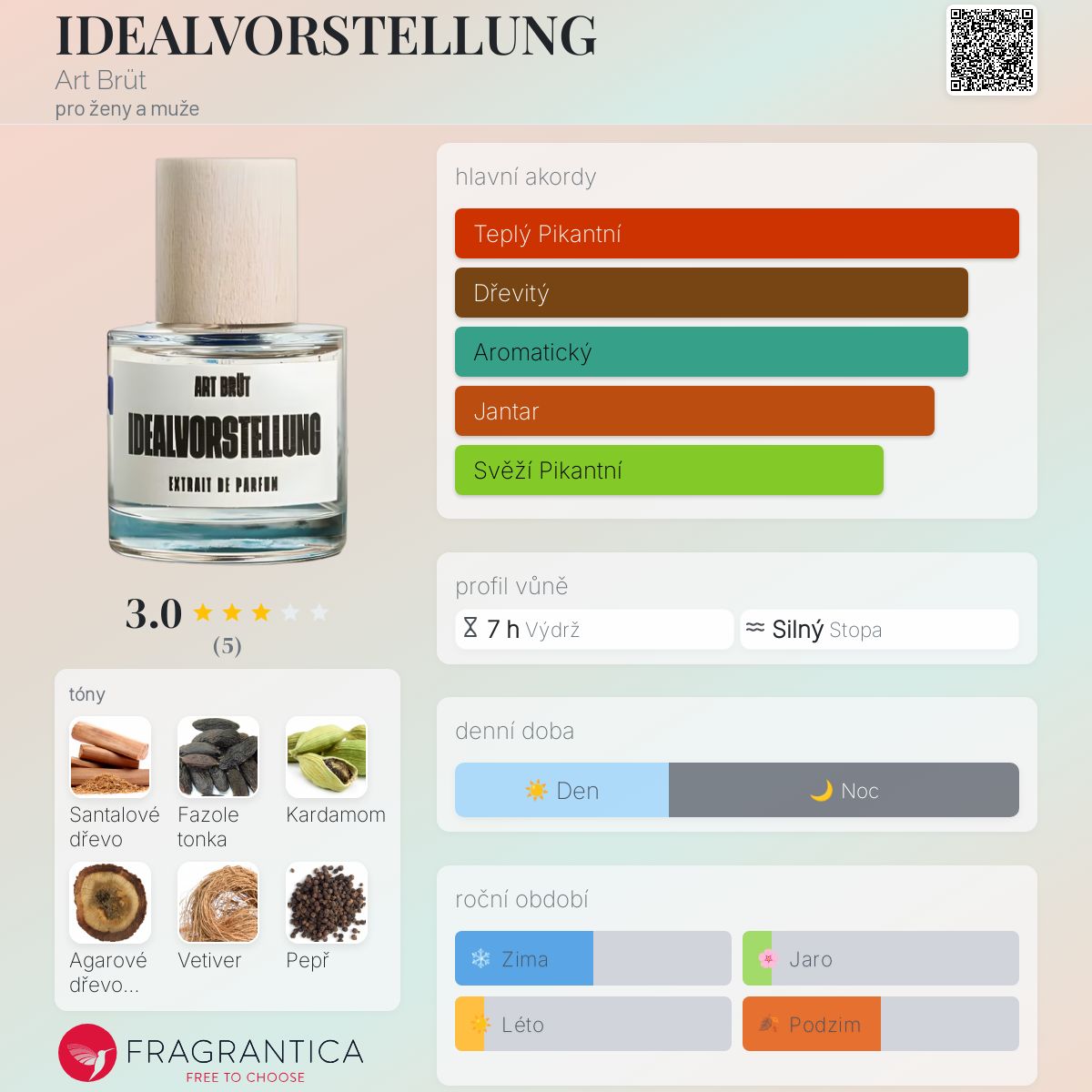 IDEALVORSTELLUNG podle Art Brüt je Woody vůně pro ženy a muže. Toto je nová vůně. IDEALVORSTELLUNG byl/a uveden/a v roce 2024.