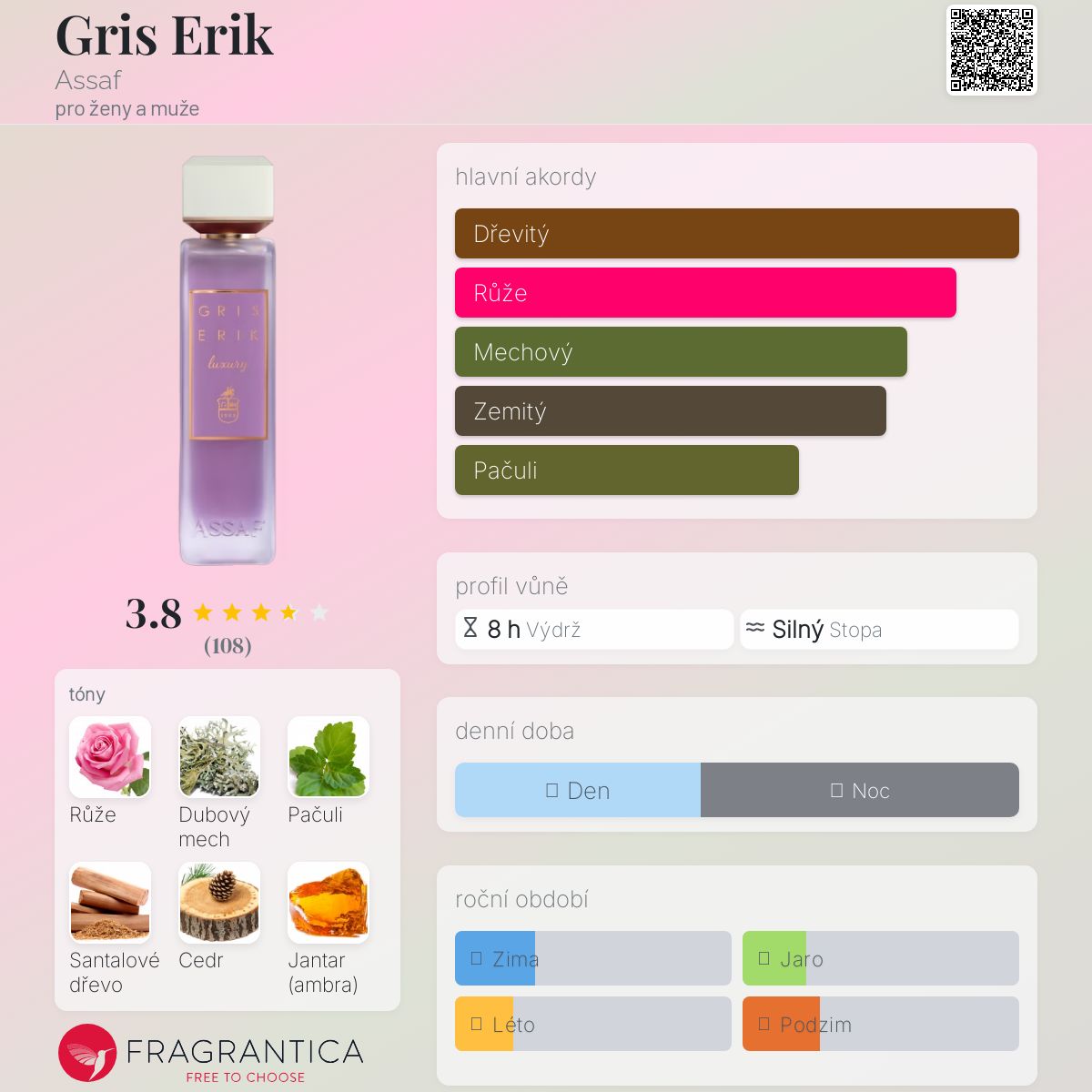 Gris Erik podle Assaf je Orientální Floral vůně pro ženy a muže. Gris Erik byl/a uveden/a v roce 2023. "Nosem" za touto vůní je Hamid Merati-Kashani.