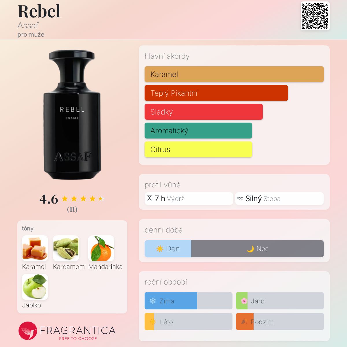 Rebel podle Assaf je Orientální Spicy vůně pro muže. Rebel byl/a uveden/a v roce 2023. Vrchní tóny jsou Mandarinka a Jablko; střední tón jeKardamom ; základní tón je Karamel.