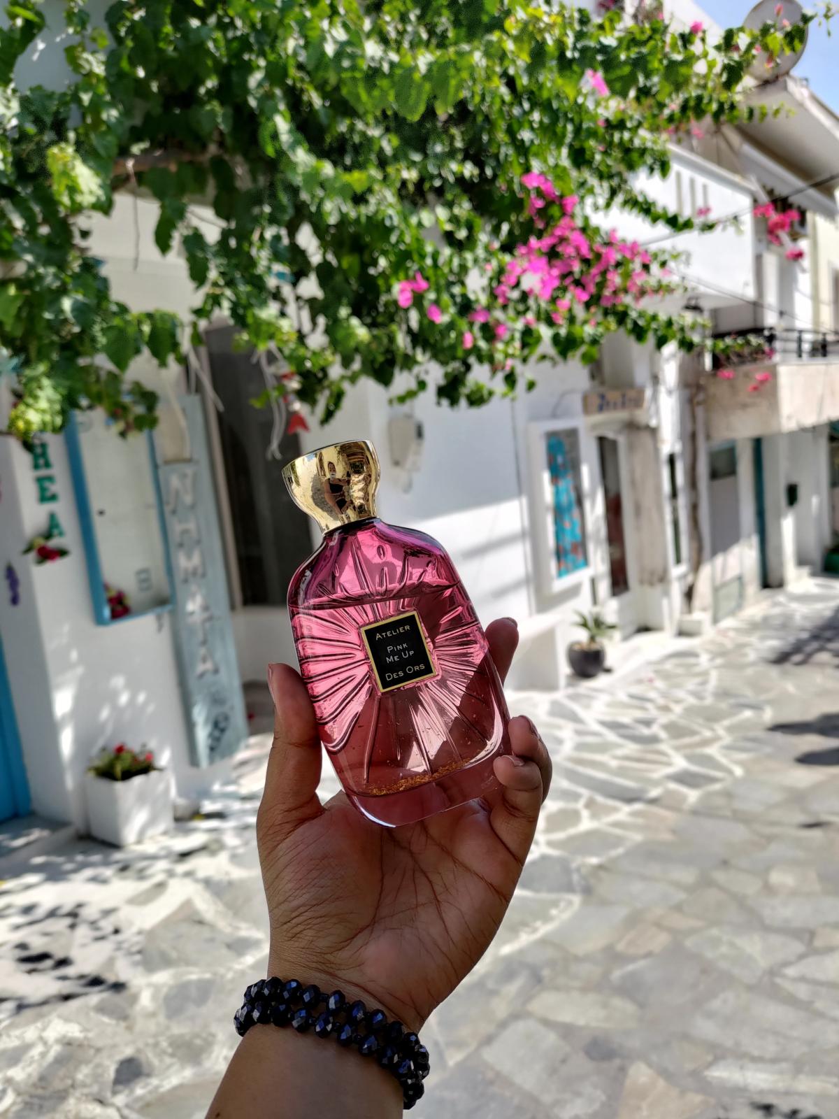 Pink Me Up podle Atelier des Ors je Floral Fruity vůně pro ženy a muže. Toto je nová vůně. Pink Me Up byl/a uveden/a v roce 2022. "Nosem" za touto vůní je Marie Salamagne. Vrchní tóny jsou Bergamot a Pomerančový květ; střední tóny jsouOstružina, Růže a Šampaňské ; základní tóny jsou Pižmo, Pačuli a Kosatec.