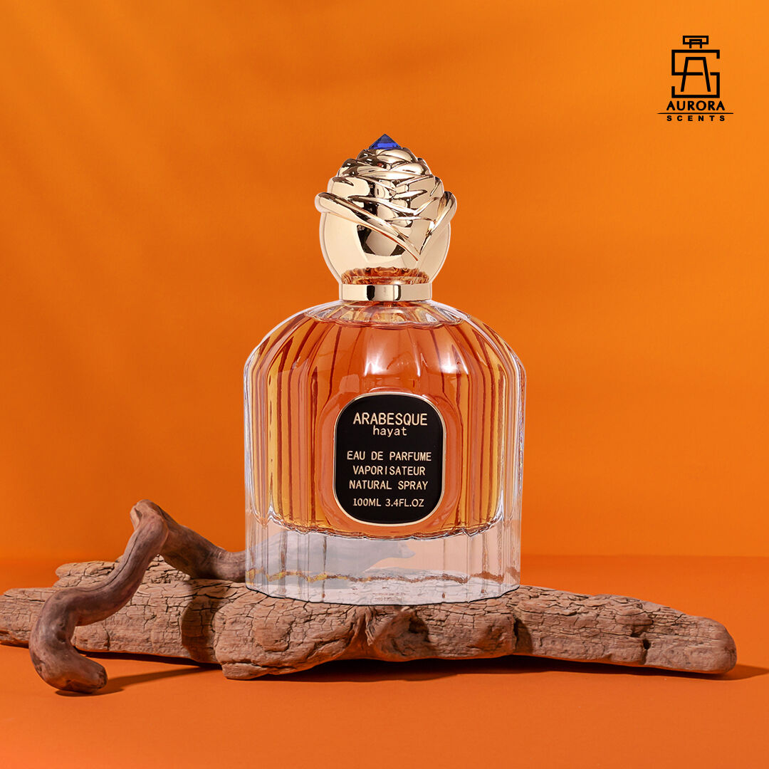 Arabesque Hayat podle Aurora Scents je Woody Aromatic vůně pro ženy a muže. Arabesque Hayat byl/a uveden/a v roce 2022. "Nosem" za touto vůní je Dominique Moellhausen. Vrchní tóny jsou Růžový pepř, Pačuli a Bergamot; střední tón jeKardamom ; základní tóny jsou Santalové dřevo a Fazole tonka.
