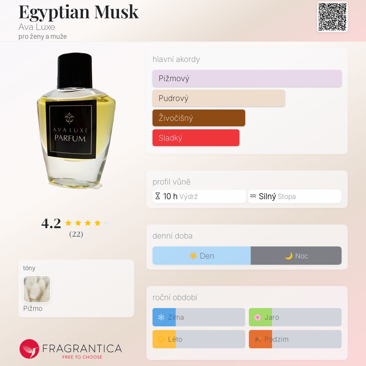 Egyptian Musk podle Ava Luxe je Floral Woody Musk vůně pro ženy a muže. Egyptian Musk byla spuštěna během 2000. "Nosem" za touto vůní je Serena Ava Franco.