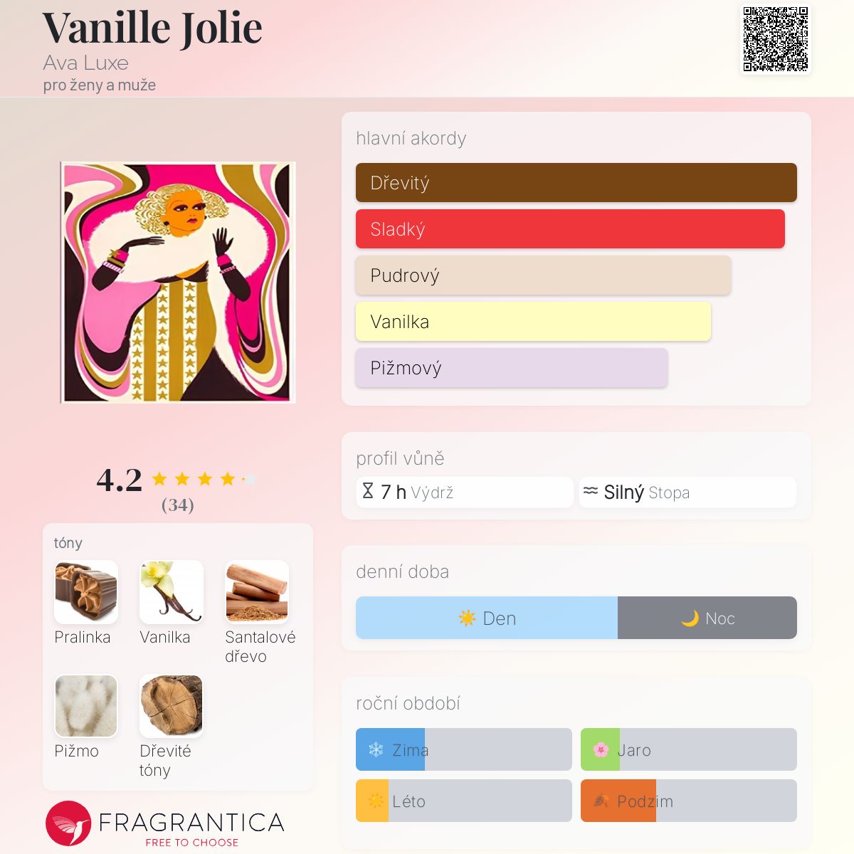 Vanille Jolie podle Ava Luxe je Orientální Vanilla vůně pro ženy a muže. Vanille Jolie byl/a uveden/a v roce 2013. "Nosem" za touto vůní je Serena Ava Franco.