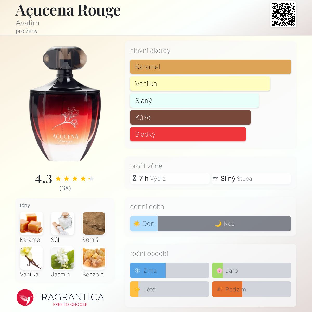 Açucena Rouge podle Avatim je Orientální Floral vůně pro ženy. Toto je nová vůně. Açucena Rouge byl/a uveden/a v roce 2024. Vrchní tón je Jasmín Sambac ; střední tóny jsouKaramel, Sůl a Semiš ; základní tóny jsou Vanilkový květ a Benzoin.