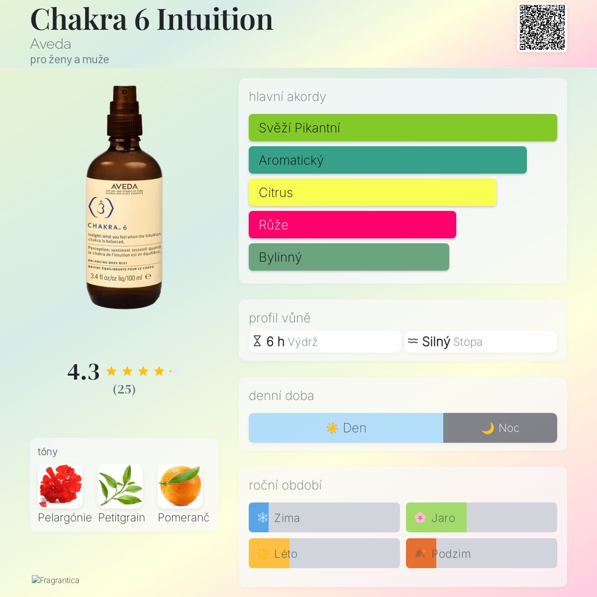 Chakra 6 Intuition podle Aveda je Aromatic vůně pro ženy a muže. Chakra 6 Intuition byl/a uveden/a v roce 2000.