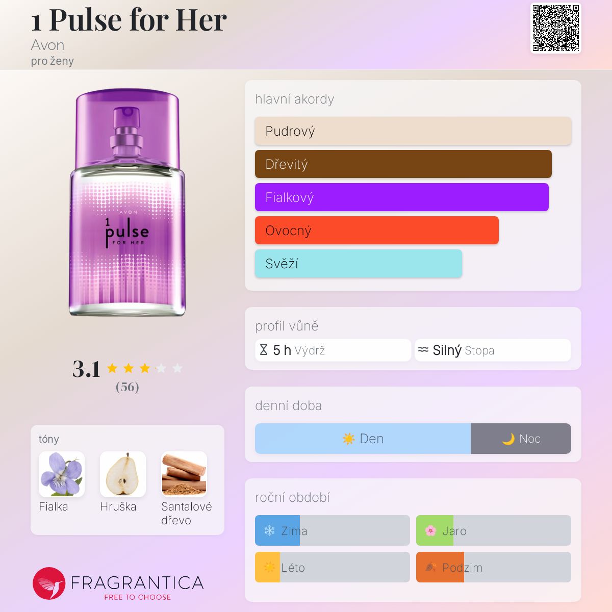 1 Pulse for Her podle Avon je Floral Fruity vůně pro ženy. 1 Pulse for Her byl/a uveden/a v roce 2017.