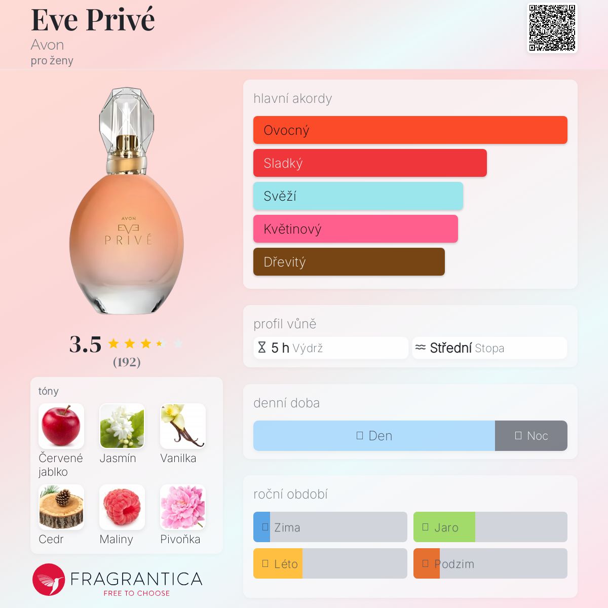 Eve Privé je jemná, lehká, příjemná, pohodlná. Klidně ji můžete nosit i v oblastech, kde parfémy nejsou povoleny. Je to také příjemná vůně na domácí nošení. Tělové mléko je příjemným doplňkem parfémové vody.