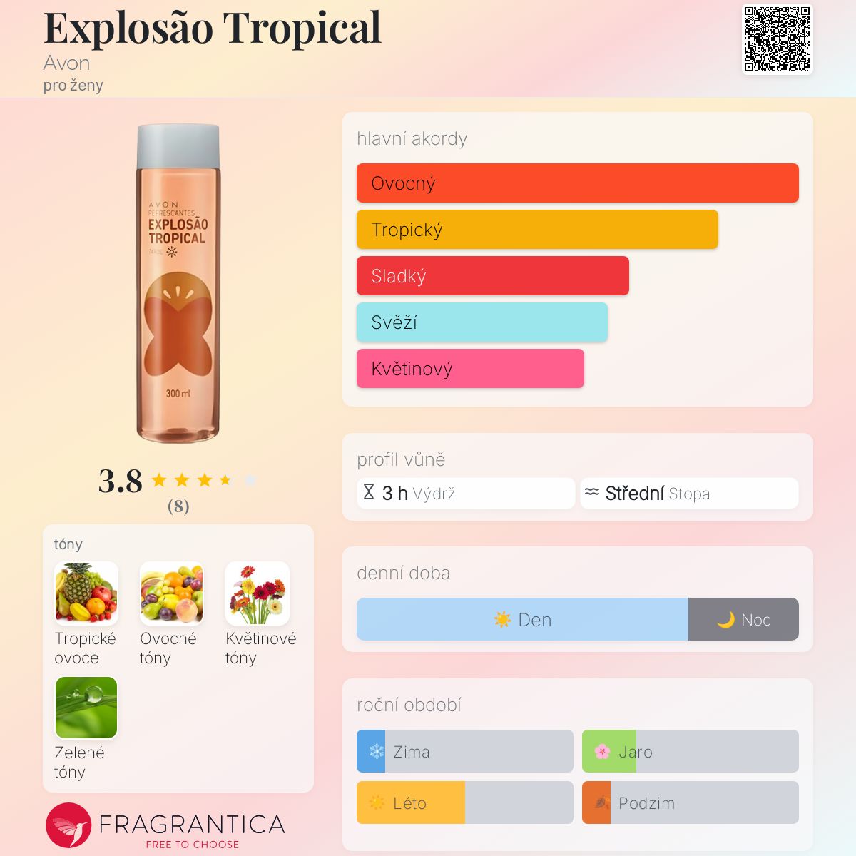 Explosão Tropical podle Avon je Floral Fruity vůně pro ženy. Explosão Tropical byl/a uveden/a v roce 2018.