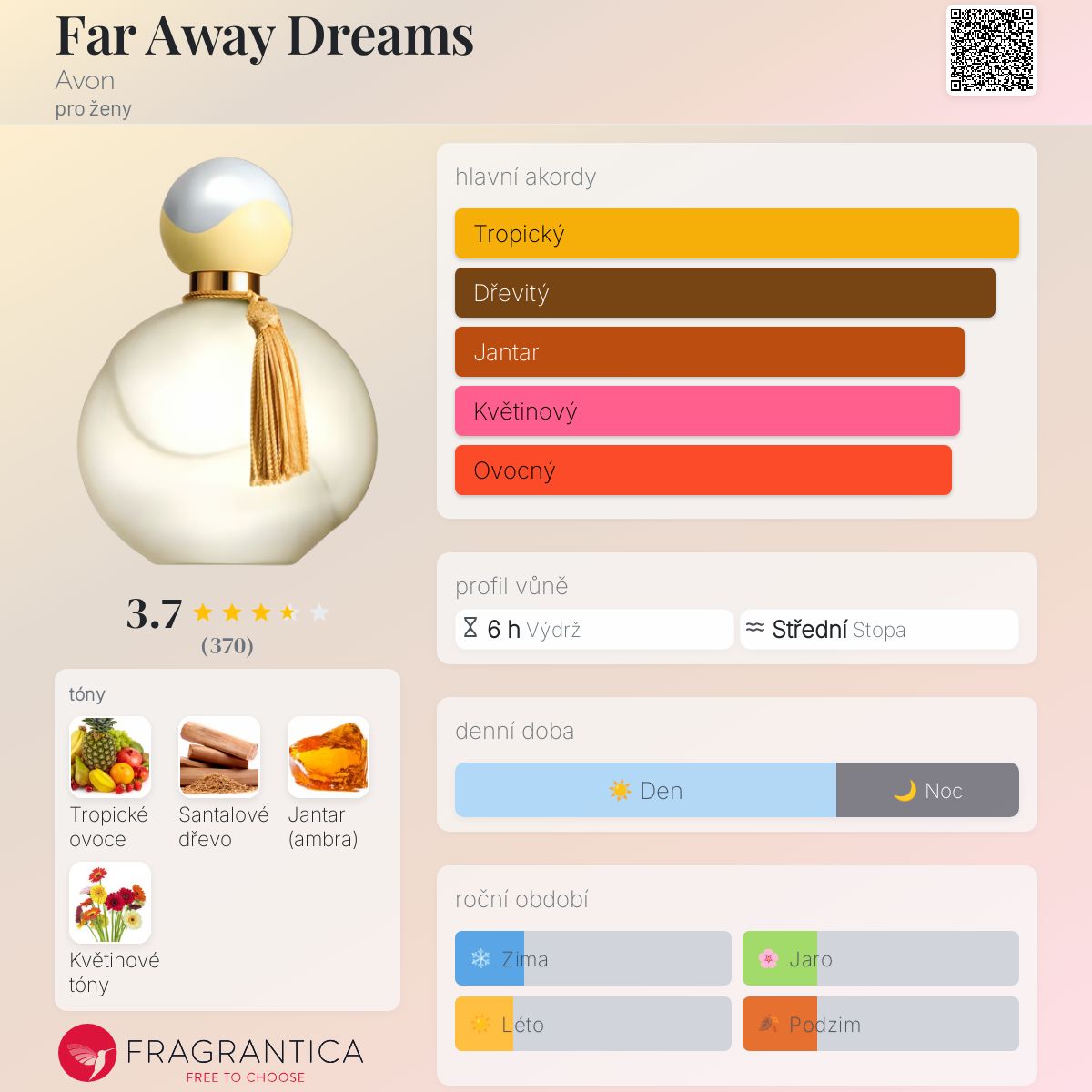 Far Away Dreams podle Avon je Orientální Floral vůně pro ženy. "Nosem" za touto vůní je Caroline Sabas. Vrchní tóny jsou Tropické ovoce a Květinové tóny; střední tóny jsouSantalové dřevo a Květinové tóny ; základní tón je Jantar (ambra).