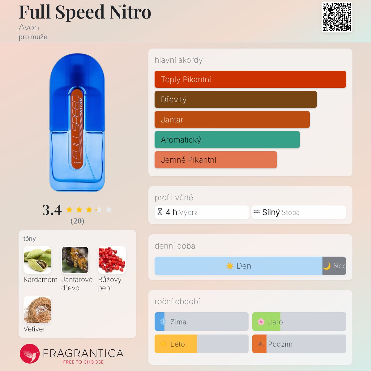 Full Speed Nitro podle Avon je vůně pro muže. Full Speed Nitro byl/a uveden/a v roce 2017. Vrchní tón je Růžový pepř ; střední tón jeKardamom ; základní tóny jsou Jantarové dřevo a Vetiver.