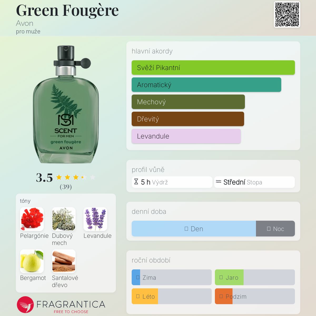 Green Fougère podle Avon je Aromatic Fougere vůně pro muže. Green Fougère byl/a uveden/a v roce 2021.
