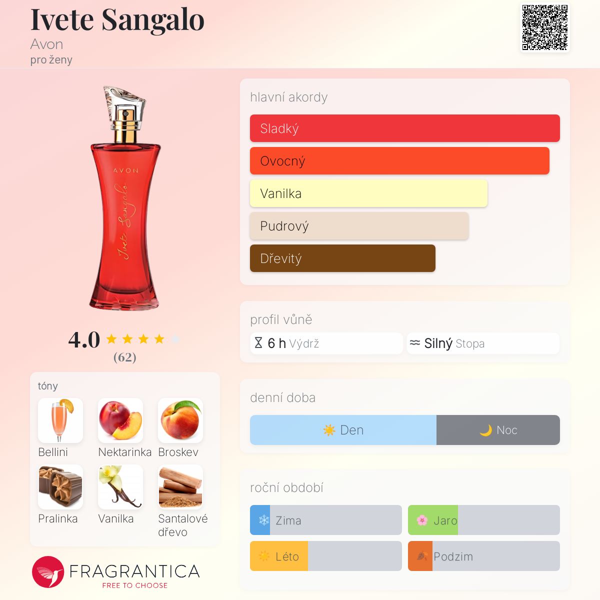 Ivete Sangalo podle Avon je Floral Fruity vůně pro ženy. Ivete Sangalo byl/a uveden/a v roce 2014. Vrchní tóny jsou Bellini, Nektarinka, Broskev a Fialkové listy; střední tóny jsouTurecká červená růže, Orchidej a Jasmín ; základní tóny jsou Pralinka, Vanilka, Santalové dřevo, Vetiver a Pižmo.