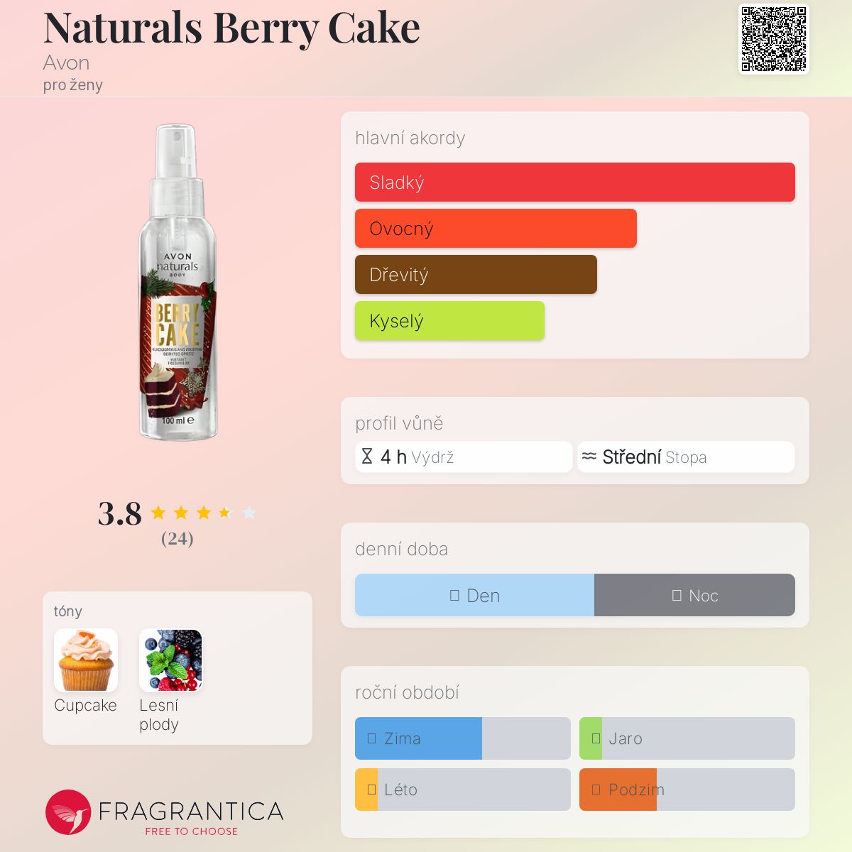 Naturals Berry Cake podle Avon je Aromatic Fruity vůně pro ženy. Naturals Berry Cake byl/a uveden/a v roce 2019.