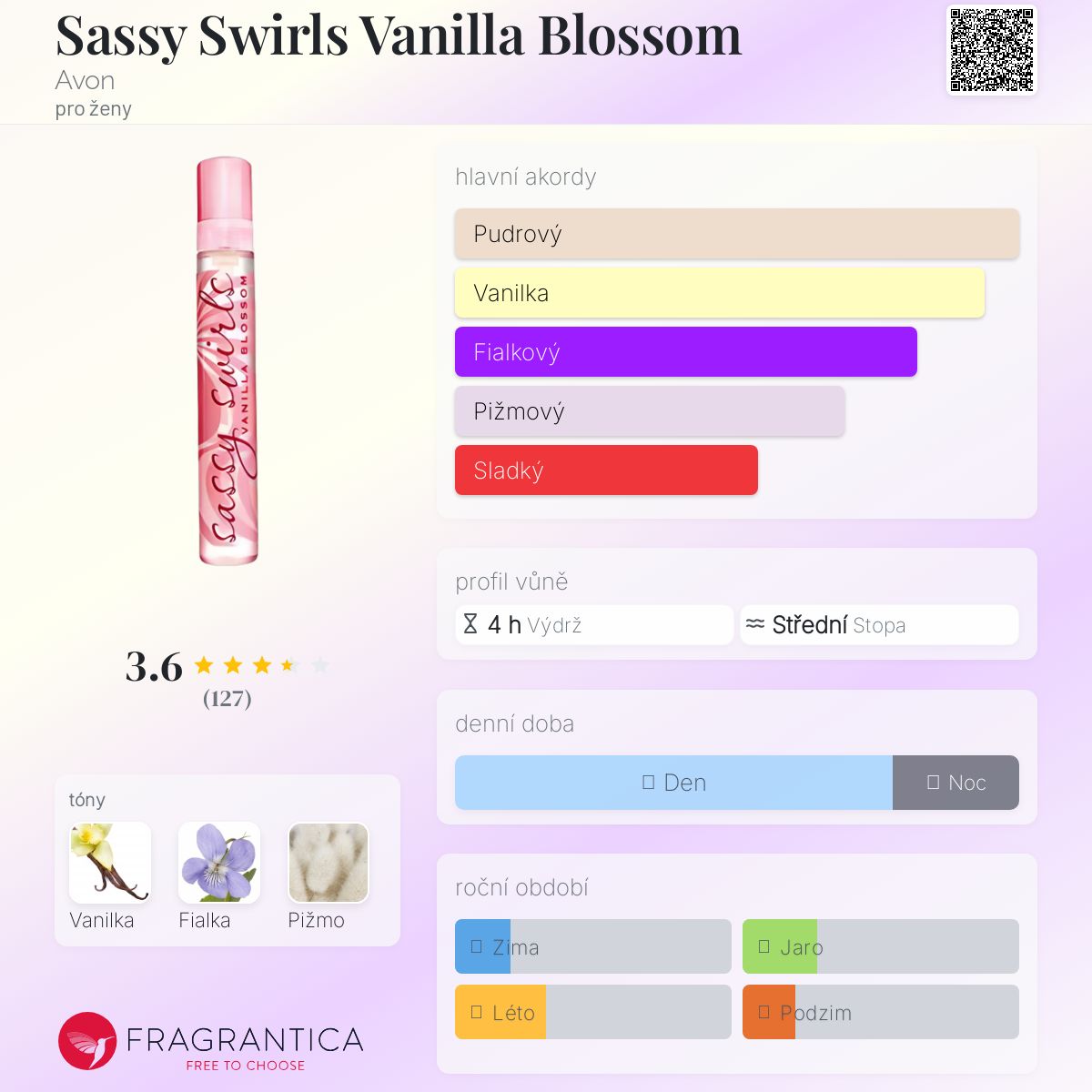 Sassy Swirls Vanilla Blossom podle Avon je Floral vůně pro ženy. Sassy Swirls Vanilla Blossom byl/a uveden/a v roce 2011.