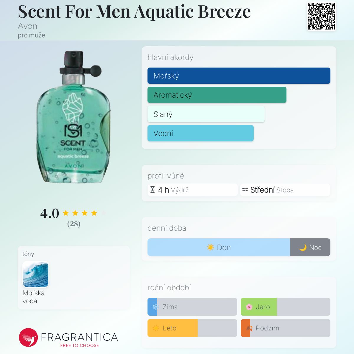 Scent For Men Aquatic Breeze podle Avon je Aromatic Aquatic vůně pro muže. Scent For Men Aquatic Breeze byl/a uveden/a v roce 2020.