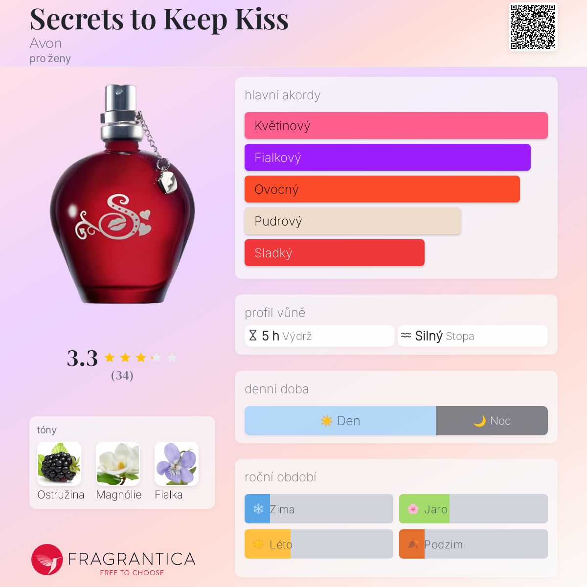 Secrets to Keep Kiss podle Avon je Floral Fruity vůně pro ženy. Secrets to Keep Kiss byl/a uveden/a v roce 2013.