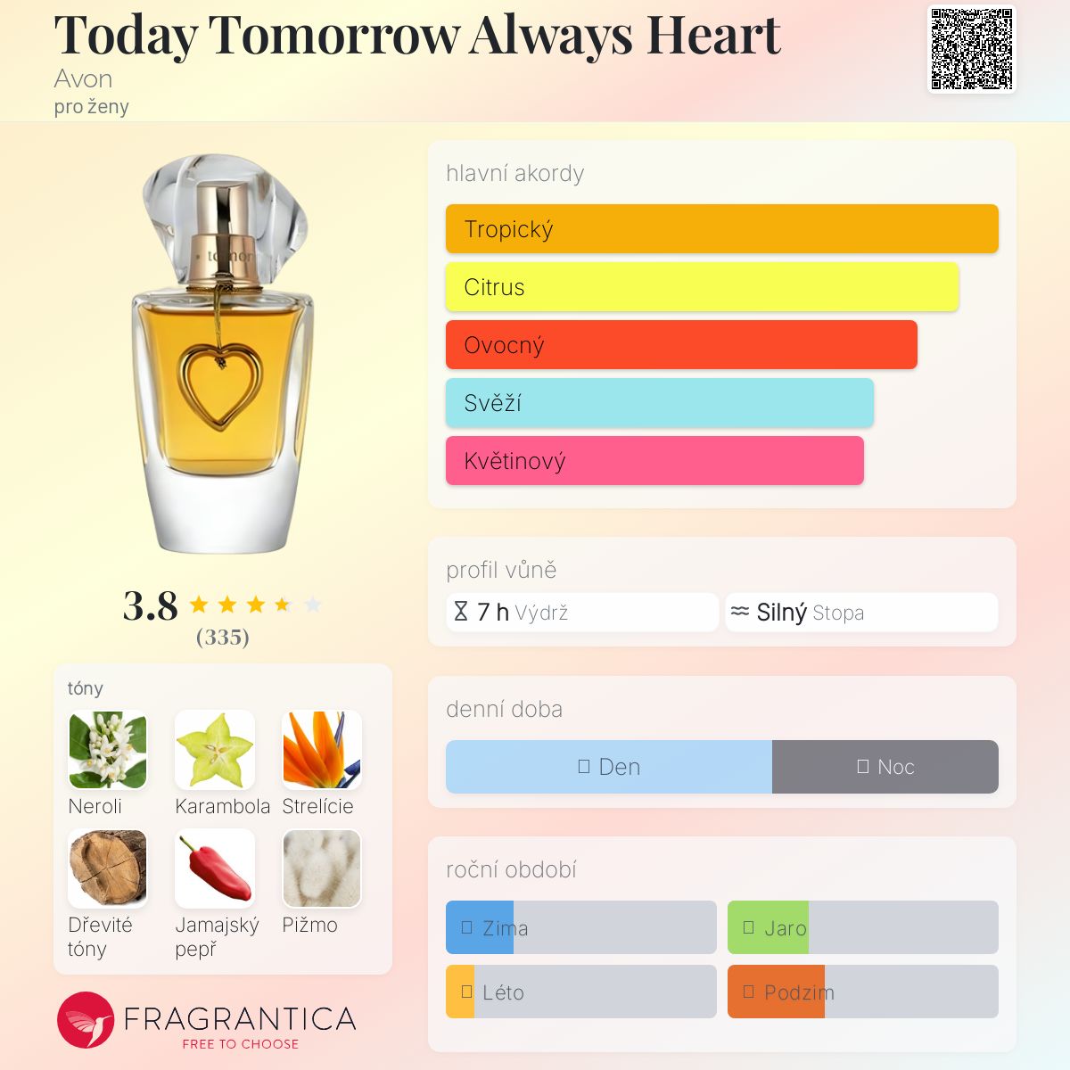 Today Tomorrow Always Heart podle Avon je Orientální vůně pro ženy. Today Tomorrow Always Heart byl/a uveden/a v roce 2005. Vrchní tóny jsou Karambola, Paprika a Mandarinka; střední tóny jsouNeroli a Strelície ; základní tóny jsou Dřevité tóny, Pižmo a Kosatec.