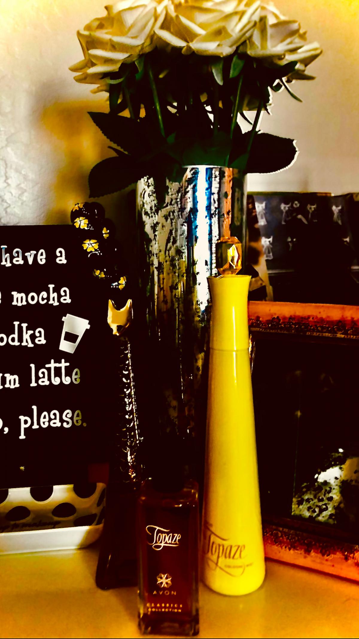 Topaze podle Avon je Floral Aldehyde vůně pro ženy. Topaze byl/a uveden/a v roce 1959. Vrchní tóny jsou Aldehydy, Koriandr, Broskev, Bergamot a Citrón; střední tóny jsouKarafiát, Ylang-Ylang, Kosatec, Růže, Jasmín a Konvalinka ; základní tóny jsou Cibetka, Santalové dřevo, Jantar (ambra), Benzoin, Vetiver a Fazole tonka.