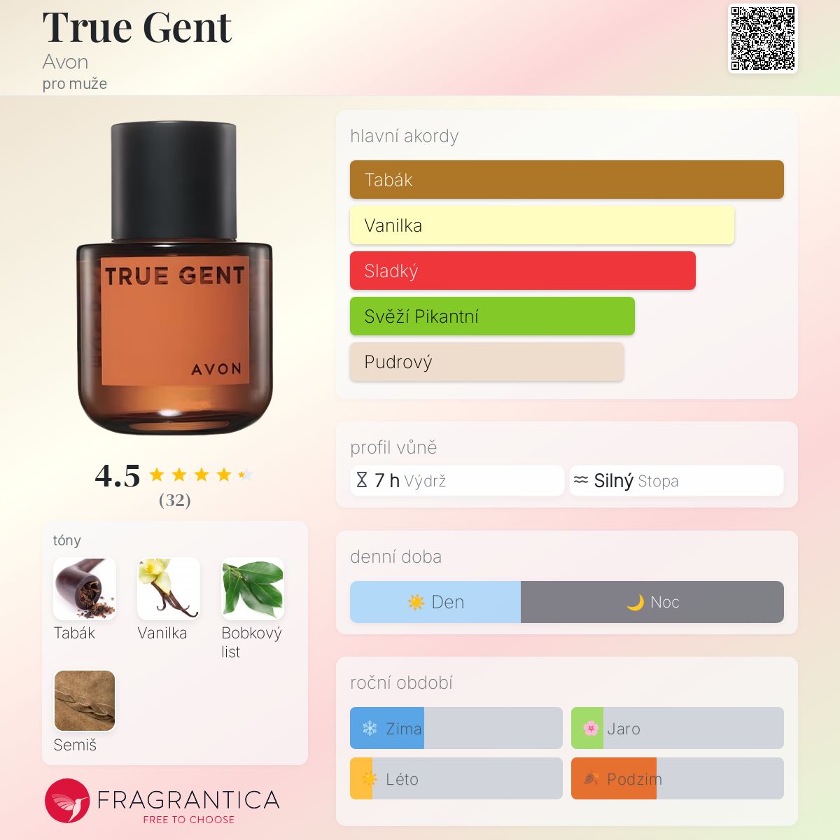 True Gent podle Avon je Aromatic vůně pro muže. True Gent byl/a uveden/a v roce 2020. Vrchní tón je Bobkový list ; střední tón jeTabák ; základní tóny jsou Vanilka a Semiš.