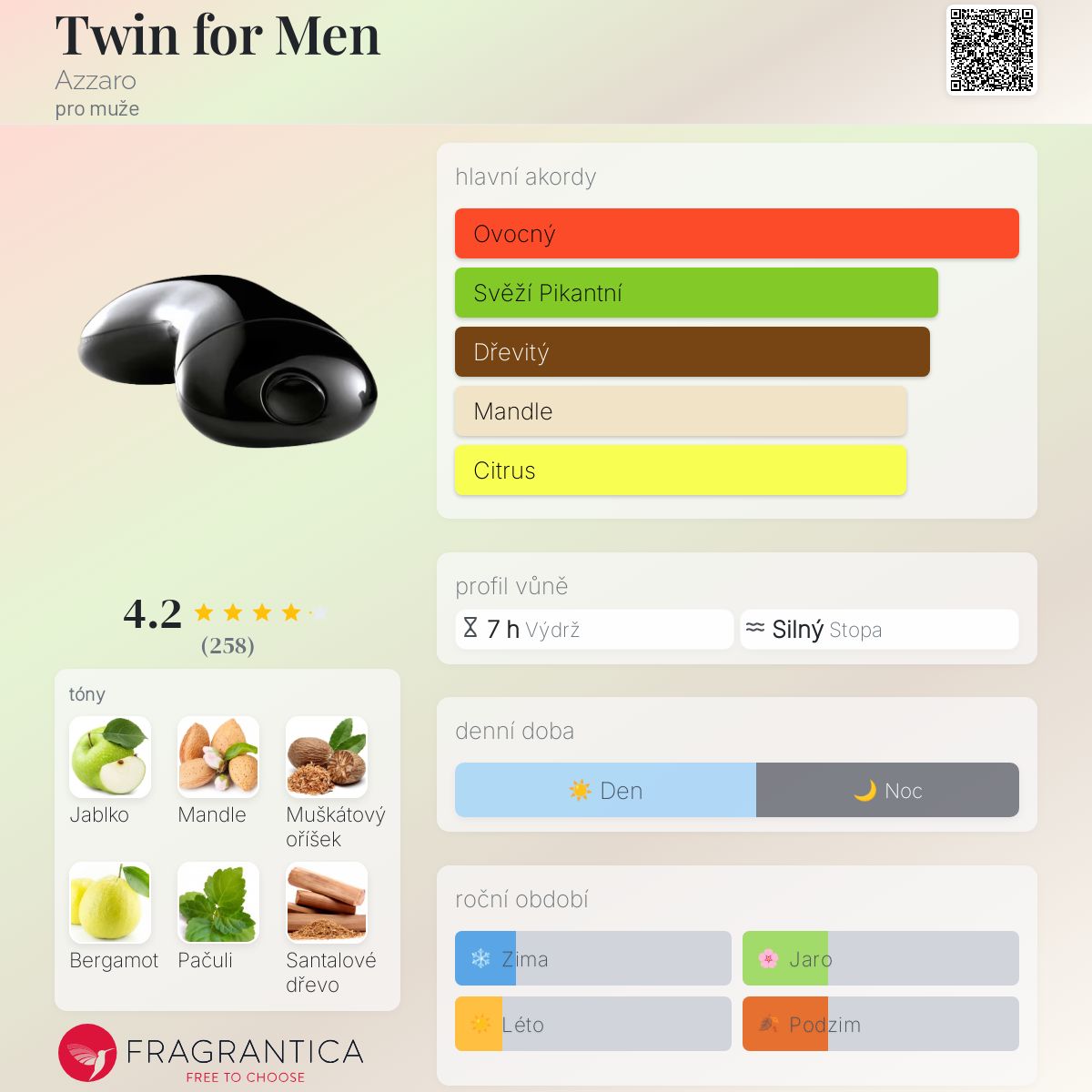Twin for Men podle Azzaro je Woody Aromatic vůně pro muže. Twin for Men byl/a uveden/a v roce 2008. Twin for Men byl/a vytvořen/a Sidonie Lancesseur, Richard Ibanez a Michel Almairac.