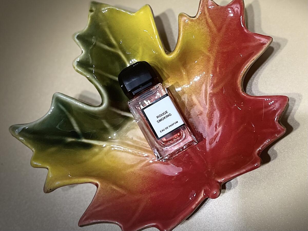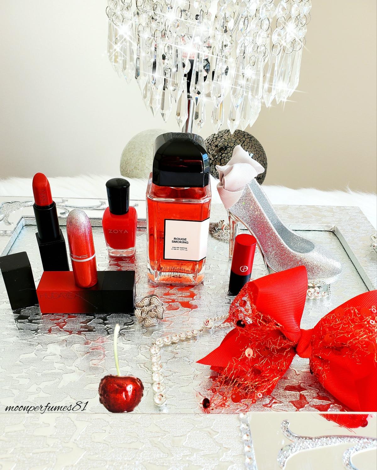 Rouge Smoking je odkaz na červený smoking. Smoking je smoking. Ona je Pigalle - Pigalle je módní čtvrť Paříže, kde se nachází Moulin Rouge. Návrhářův nápad pro tento parfém není tabák. Je to sexy dvacetiletá dáma oblečená do červeného smokingového saka, která ztělesňuje ducha módní pařížské noční scény. Třešňové tóny dávají smysl, s červenou šťávou. Ale nejsem si jistá, odkud lidé berou "kouřový" tón.