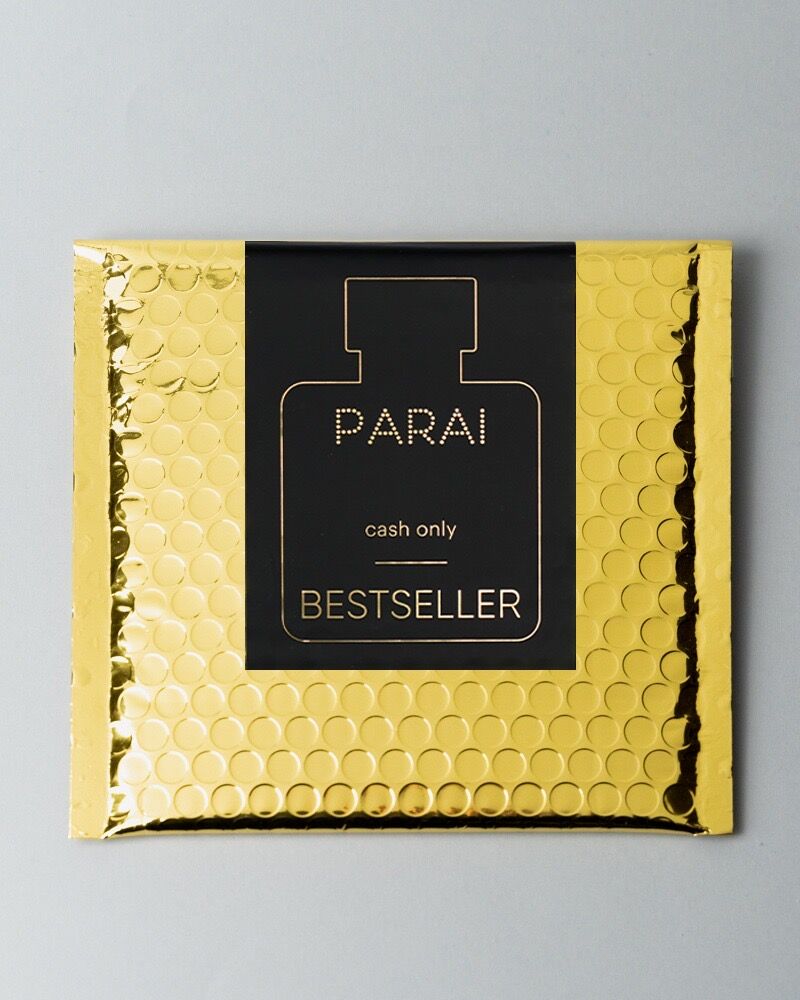 PARAI podle BESTSELLER je Floral Fruity vůně pro ženy a muže. Toto je nová vůně. PARAI byl/a uveden/a v roce 2025. "Nosem" za touto vůní je Arturetto Landi. Vrchní tóny jsou Fialkové listy, Krvavý pomeranč, Bergamot, Limetka, Jablko, Ananas a Švestka; střední tóny jsouKonvalinka, Růže, Jasmín, Orchidej, Pelargónie a Levandule ; základní tóny jsou Ambra, Bílé pižmo, Cedr, Santalové dřevo, Fazole tonka a Mech.