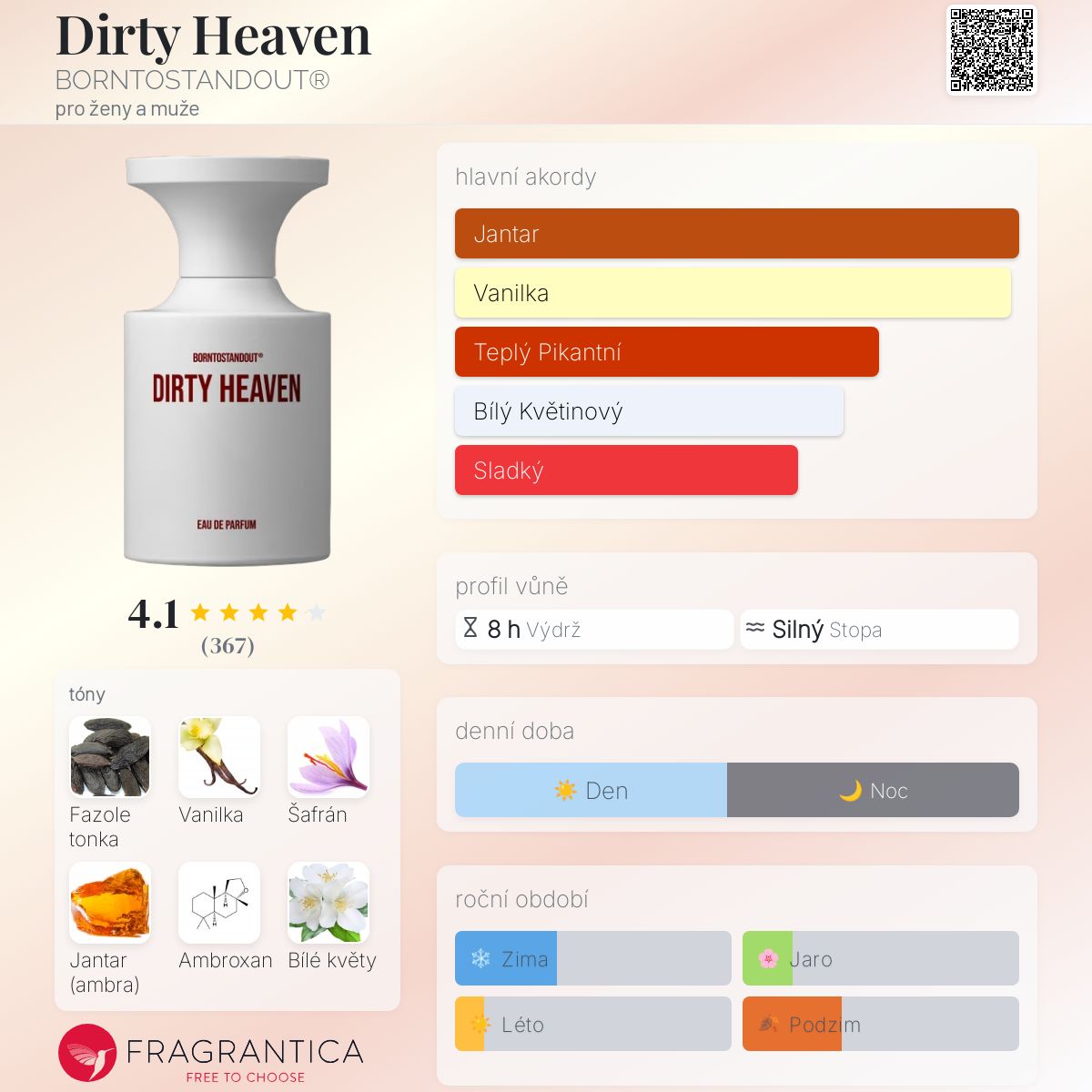 Dirty Heaven podle BORNTOSTANDOUT® je Orientální Floral vůně pro ženy a muže. Dirty Heaven byl/a uveden/a v roce 2023. "Nosem" za touto vůní je Margaux Le Paih Guérin.