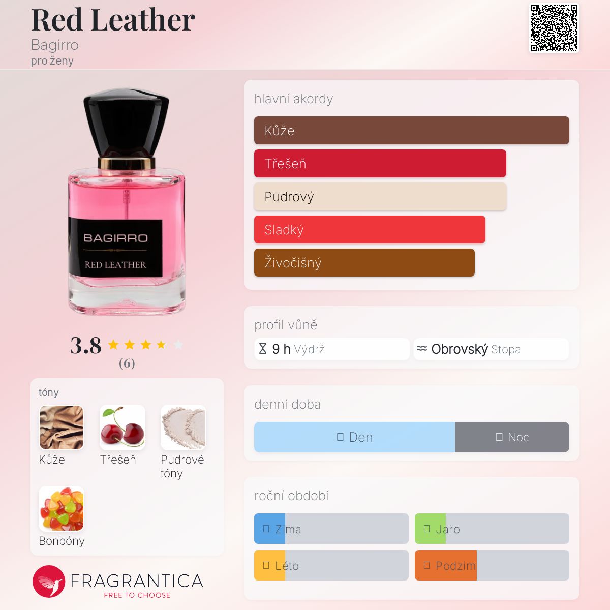 Red Leather podle Bagirro je Leather vůně pro ženy. Red Leather byl/a uveden/a v roce 2019. "Nosem" za touto vůní je Umid Asadov.