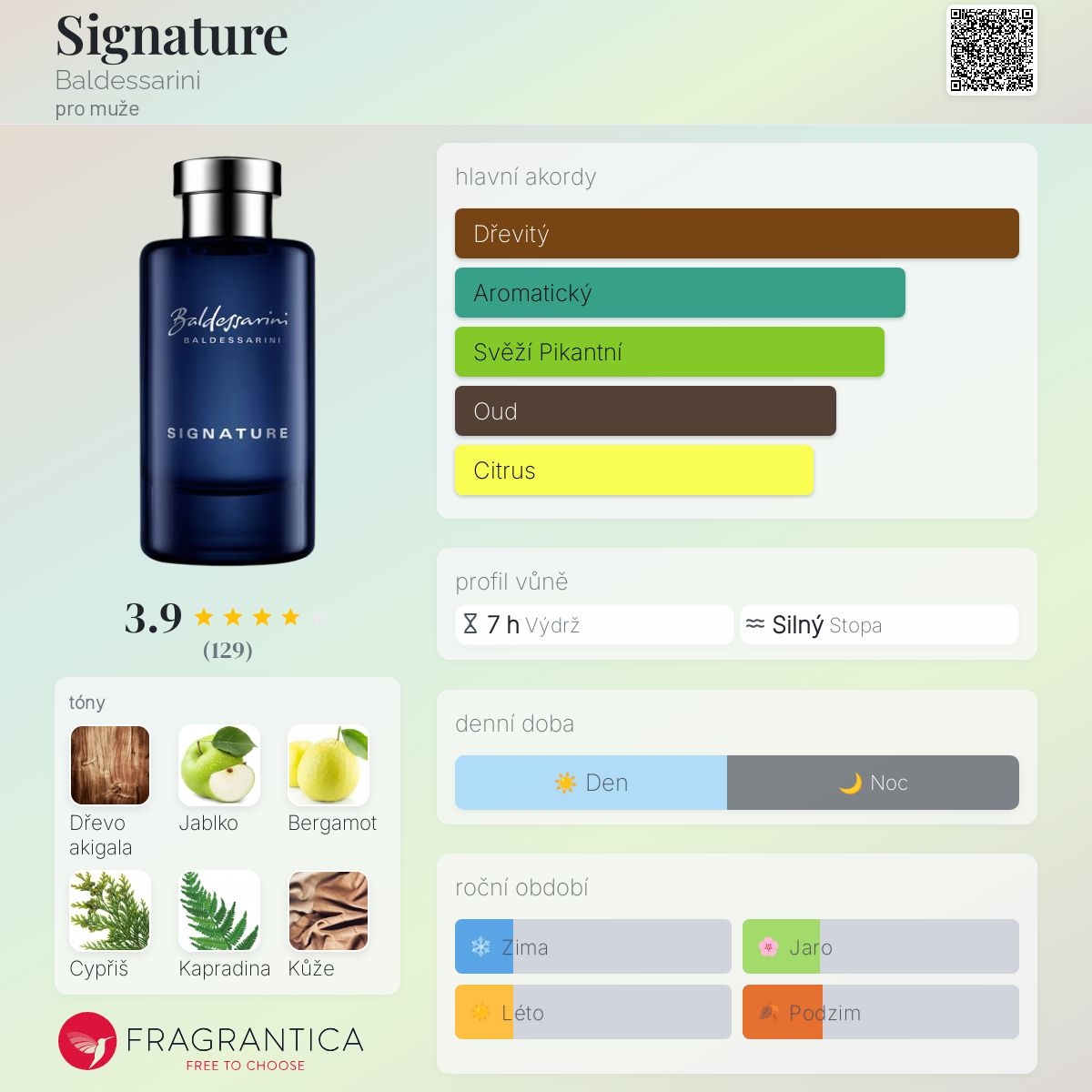 Signature podle Baldessarini je Aromatic Fougere vůně pro muže. Signature byl/a uveden/a v roce 2020. Vrchní tóny jsou Jablko, Bergamot, Cypřiš a Růžový pepř; střední tóny jsouDřevo akigala, Kapradina a Pačuli ; základní tóny jsou Kůže, Jantar (ambra), Labdanum a Cypriolový olej.