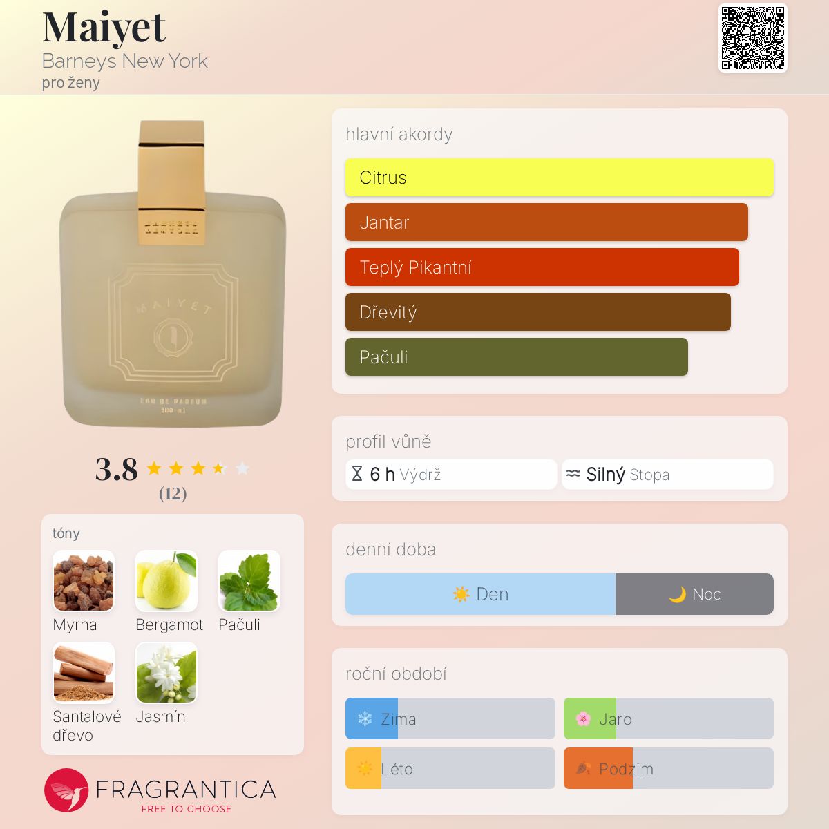 Maiyet podle Barneys New York je Orientální Floral vůně pro ženy. Maiyet byl/a uveden/a v roce 2014. "Nosem" za touto vůní je Ralf Schwieger.