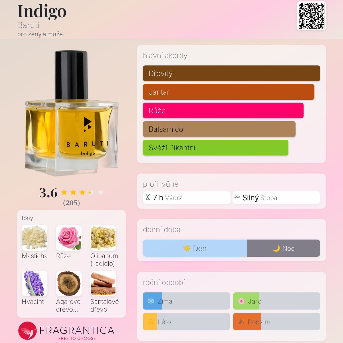 Indigo podle Baruti je Woody Floral Musk vůně pro ženy a muže. Indigo byl/a uveden/a v roce 2015. "Nosem" za touto vůní je Spyros Drosopoulos.