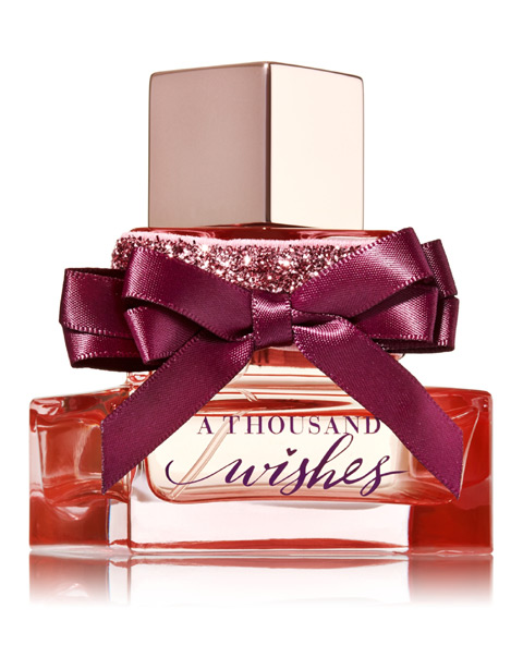 A Thousand Wishes podle Bath & Body Works je Floral Fruity Gourmand vůně pro ženy. A Thousand Wishes byl/a uveden/a v roce 2014. A Thousand Wishes byl/a vytvořen/a Calice Becker, Adriana Medina-Baez, John Gamba a Aurélien Guichard. Vrchní tóny jsou Šampaňské, Karambola a Kdoule; střední tóny jsouPivoňka a Frézie ; základní tóny jsou Cukr, Mandlový krém, Jantar (ambra), Santalové dřevo a Pižmo.