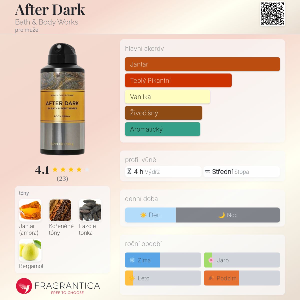 After Dark podle Bath & Body Works je Orientální Spicy vůně pro muže. Toto je nová vůně. After Dark byl/a uveden/a v roce 2024.