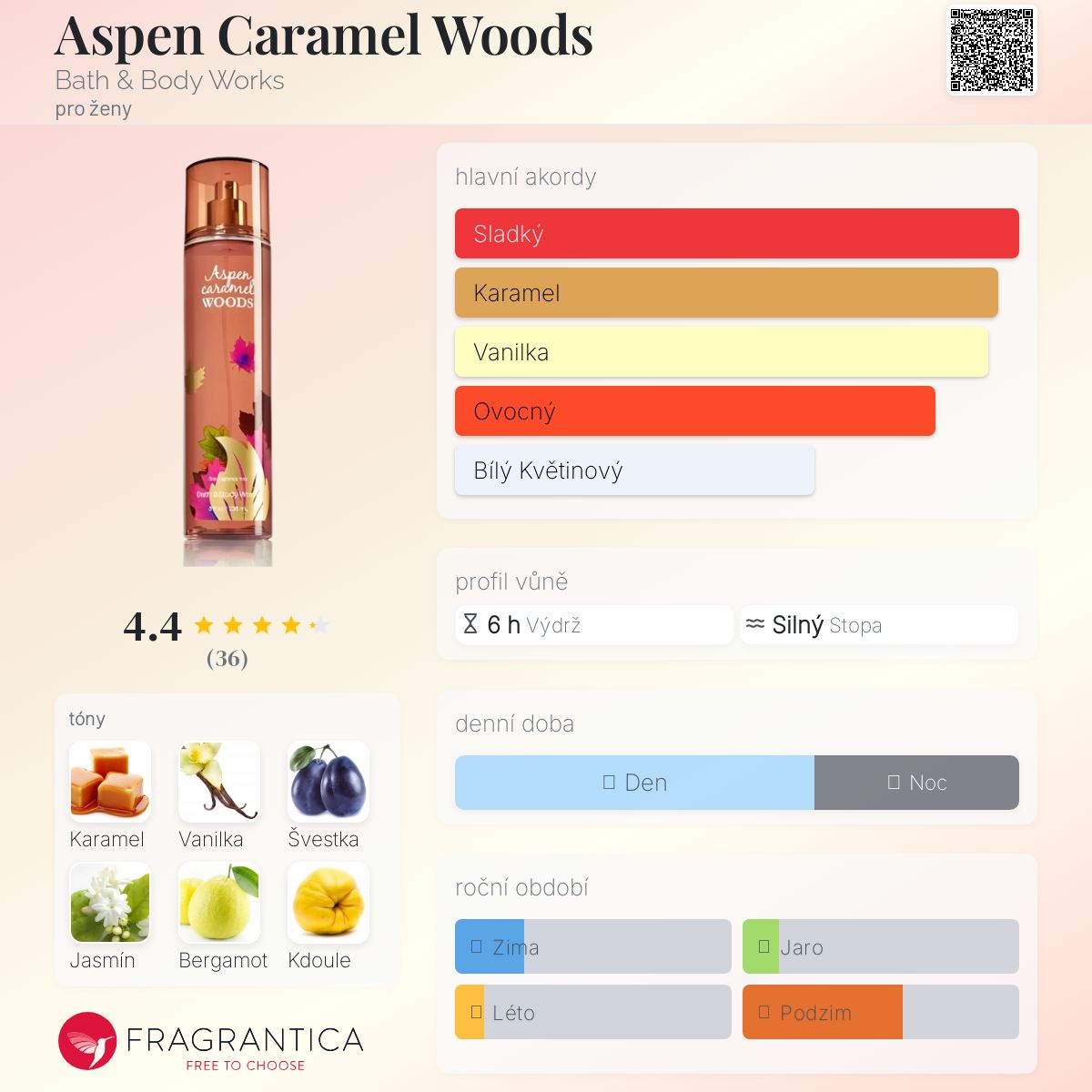 Aspen Caramel Woods podle Bath & Body Works je Floral Fruity Gourmand vůně pro ženy. Aspen Caramel Woods byl/a uveden/a v roce 2013.