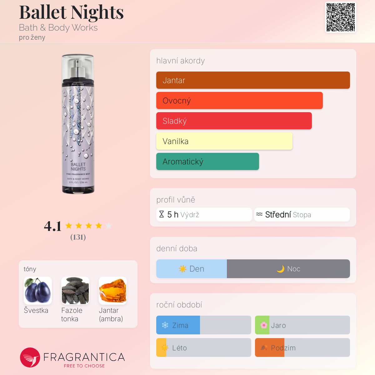 Ballet Nights podle Bath & Body Works je Orientální vůně pro ženy. Ballet Nights byl/a uveden/a v roce 2023.