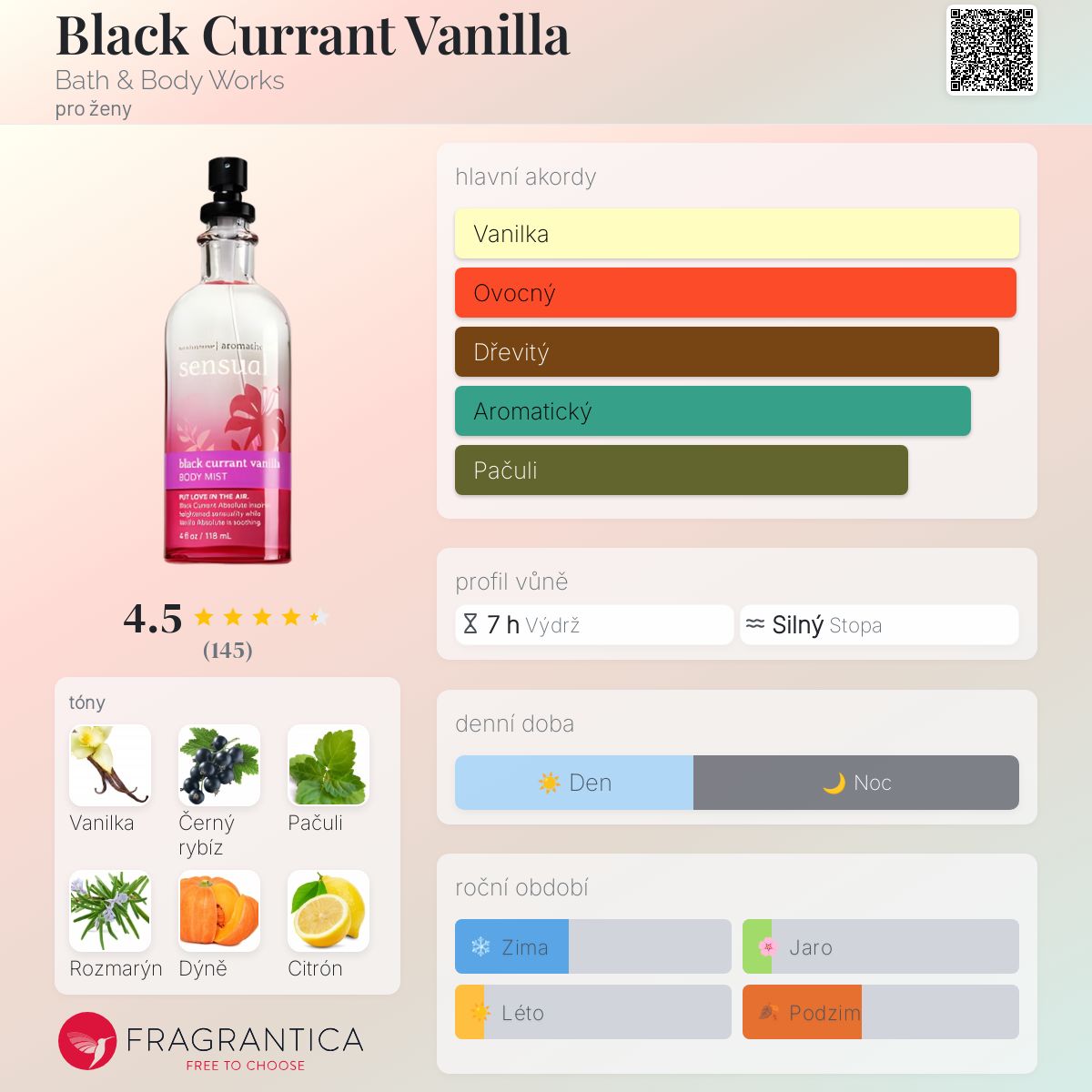 Black Currant Vanilla podle Bath & Body Works je Orientální Vanilla vůně pro ženy. Black Currant Vanilla byl/a uveden/a v roce 2007.