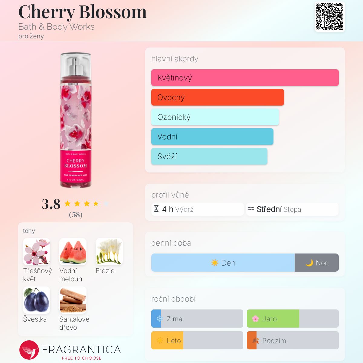 Cherry Blossom podle Bath & Body Works je Floral vůně pro ženy. Toto je nová vůně. Cherry Blossom byl/a uveden/a v roce 2024.