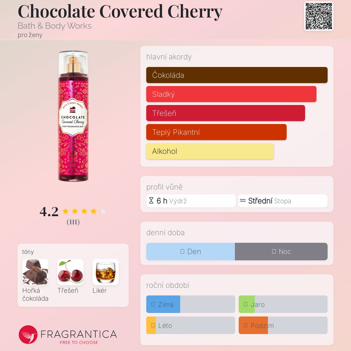 Chocolate Covered Cherry podle Bath & Body Works je Floral Fruity Gourmand vůně pro ženy. Chocolate Covered Cherry byl/a uveden/a v roce 2021.
