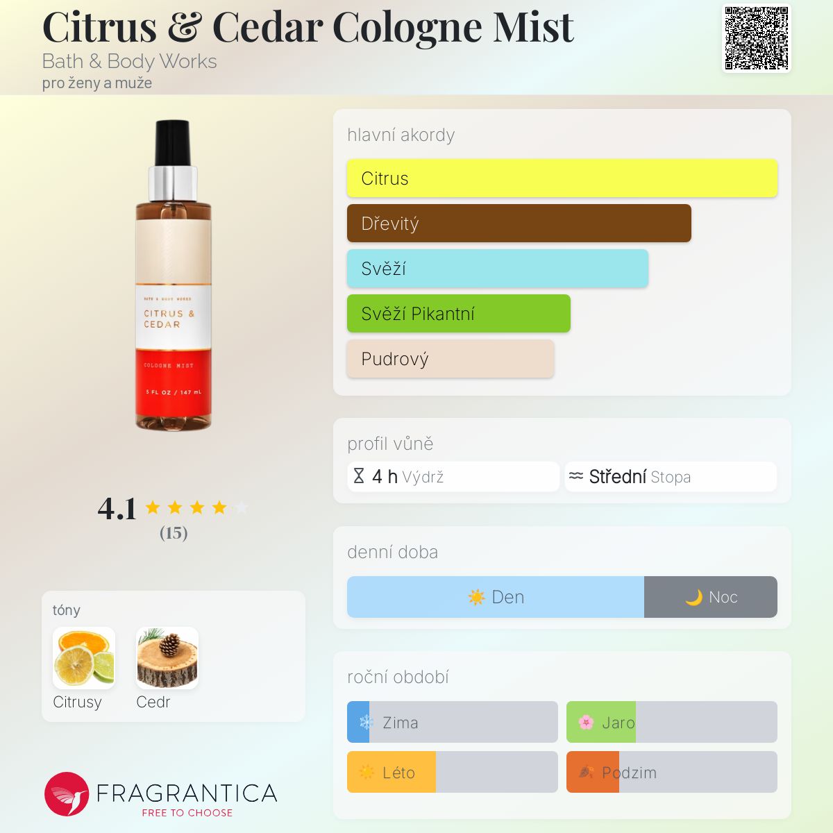 Citrus & Cedar Cologne Mist podle Bath & Body Works je Citrus vůně pro ženy a muže. Citrus & Cedar Cologne Mist byl/a uveden/a v roce 2023.