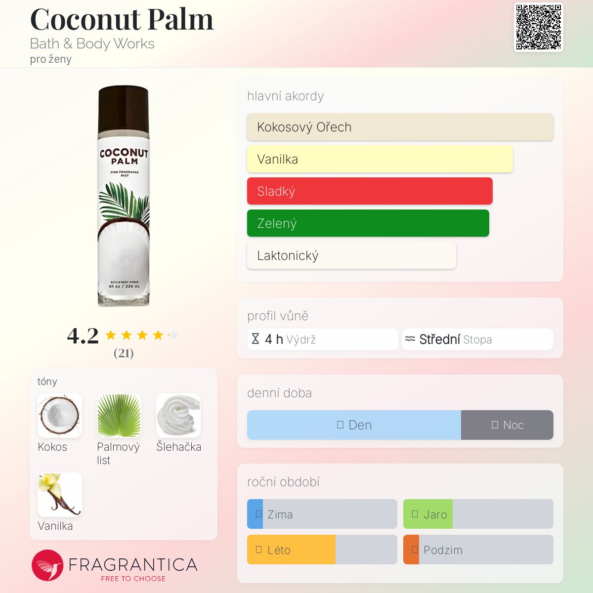 Coconut Palm podle Bath & Body Works je Aromatic vůně pro ženy. Coconut Palm byl/a uveden/a v roce 2020.