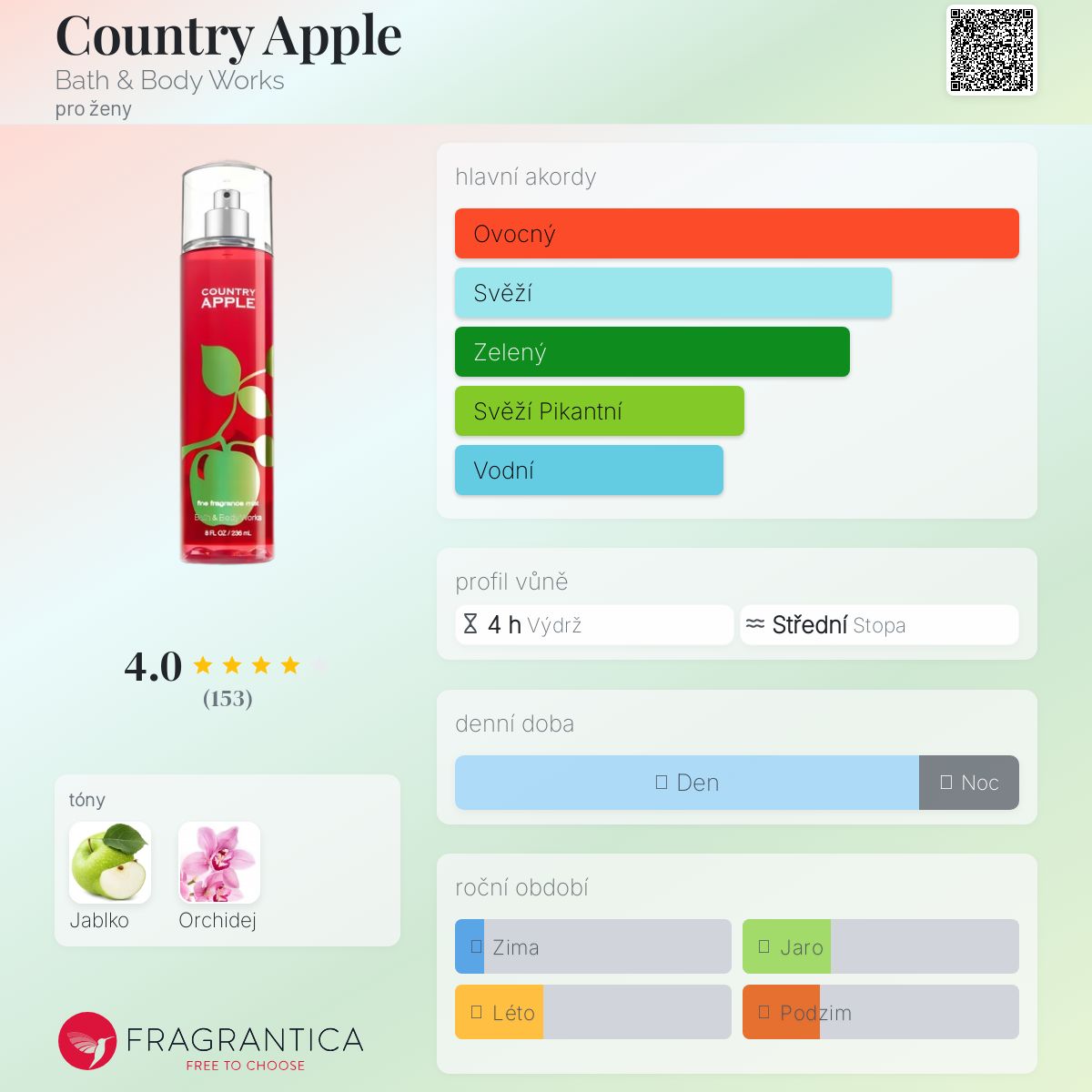 Country Apple podle Bath & Body Works je Floral Fruity vůně pro ženy. Country Apple byl/a uveden/a v roce 2019.