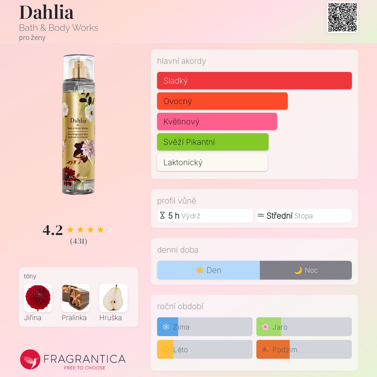 Dahlia podle Bath & Body Works je Floral Fruity vůně pro ženy. Dahlia byl/a uveden/a v roce 2020. "Nosem" za touto vůní je Alexis Grugeon.