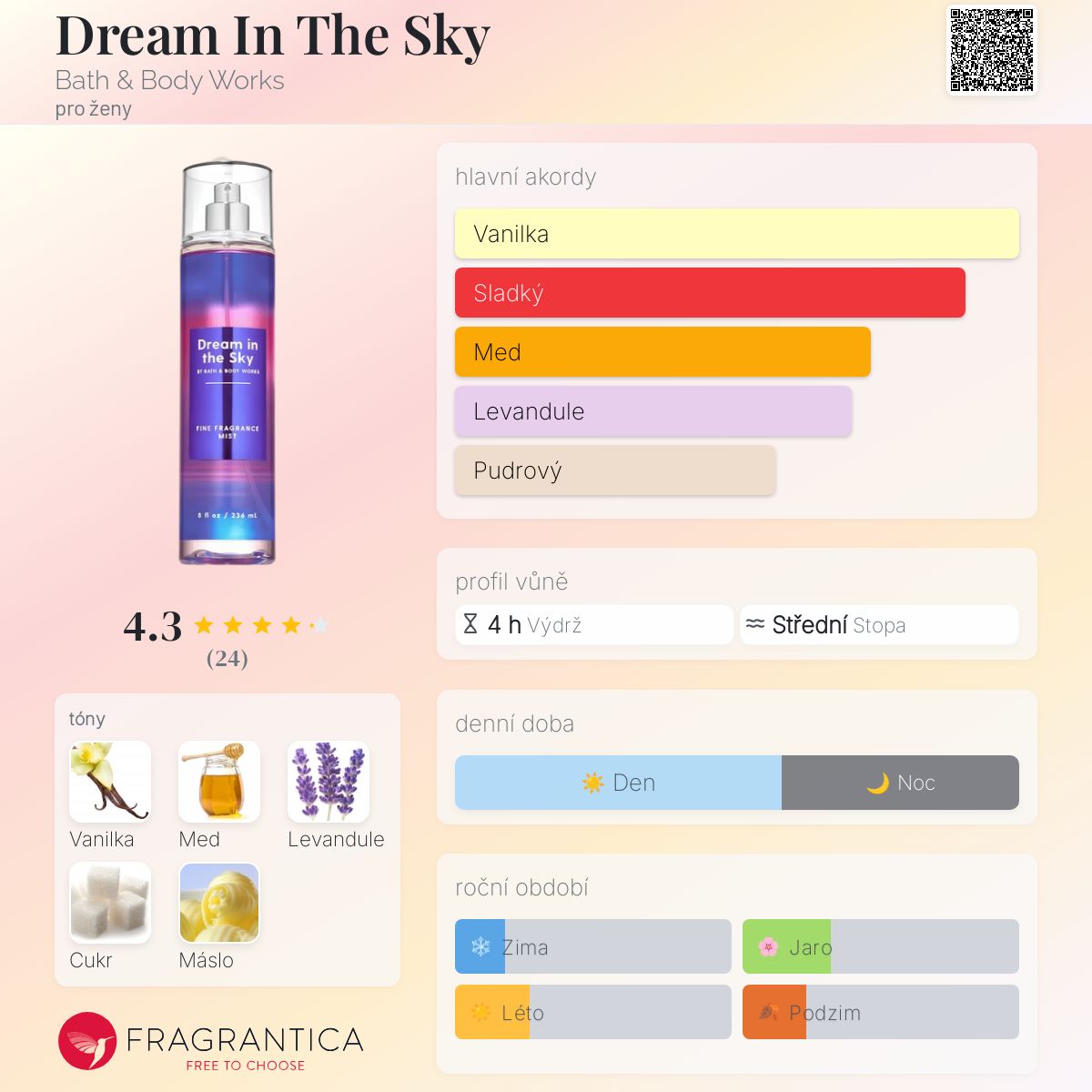 Dream In The Sky podle Bath & Body Works je Aromatic vůně pro ženy. Dream In The Sky byl/a uveden/a v roce 2019.