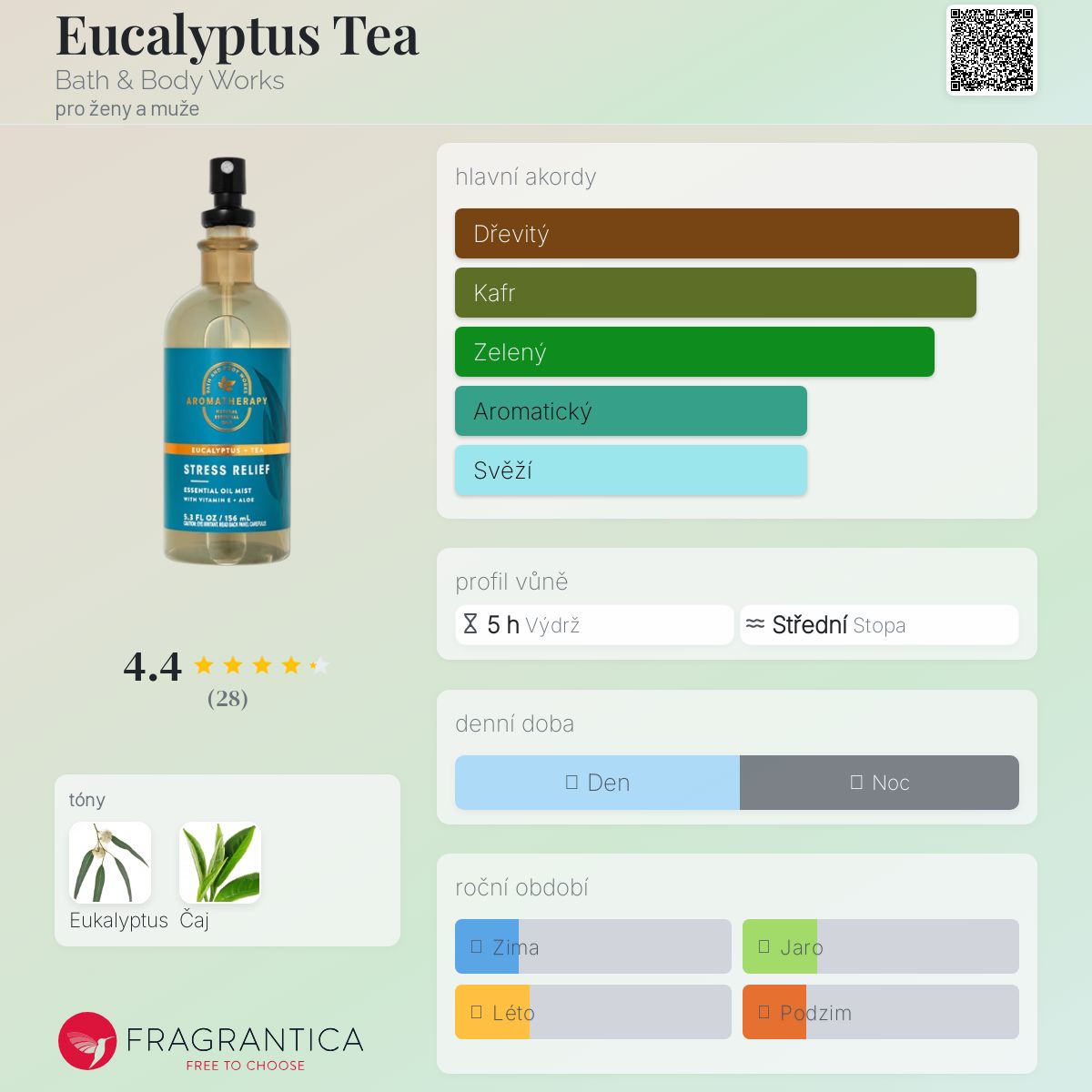 Eucalyptus Tea podle Bath & Body Works je Citrus Aromatic vůně pro ženy a muže. Eucalyptus Tea byl/a uveden/a v roce 2023.