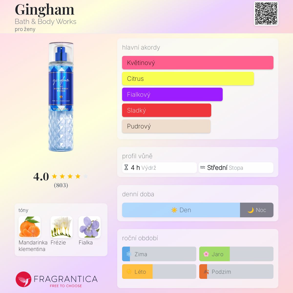 Gingham podle Bath & Body Works je Citrus vůně pro ženy. Gingham byl/a uveden/a v roce 2019.