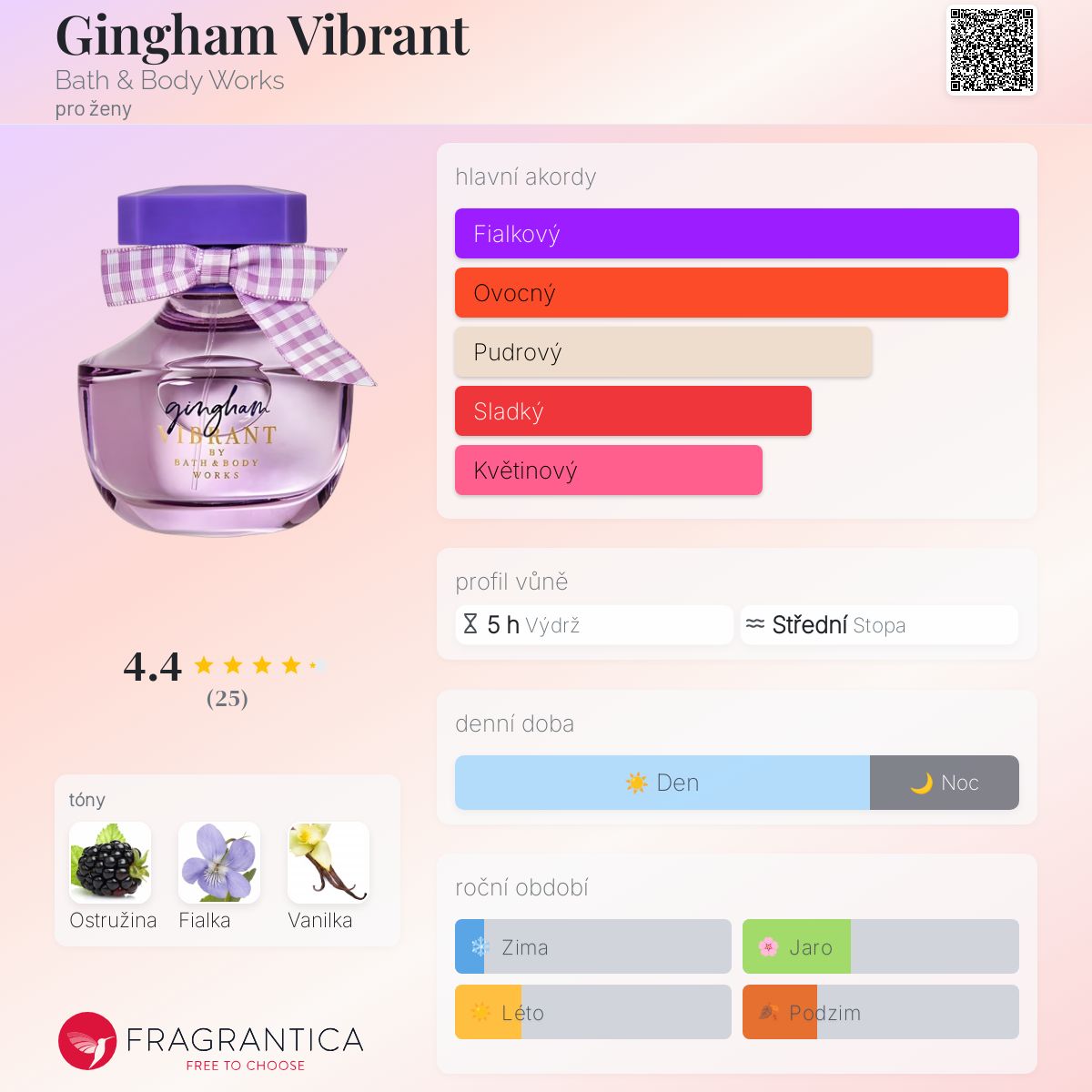 Gingham Vibrant podle Bath & Body Works je Floral Fruity vůně pro ženy. Gingham Vibrant byl/a uveden/a v roce 2023. Vrchní tón je Ostružina ; střední tón jeFialka ; základní tón je Vanilka.